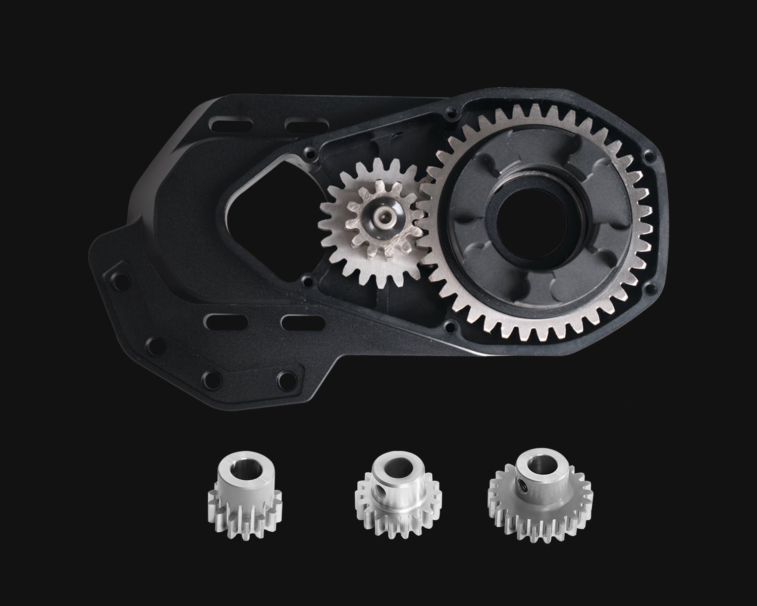 The gearbox is made from 6061 aluminum alloy CNC machined in one piece, ensuring it remains deformation-free even under high-speed impacts.