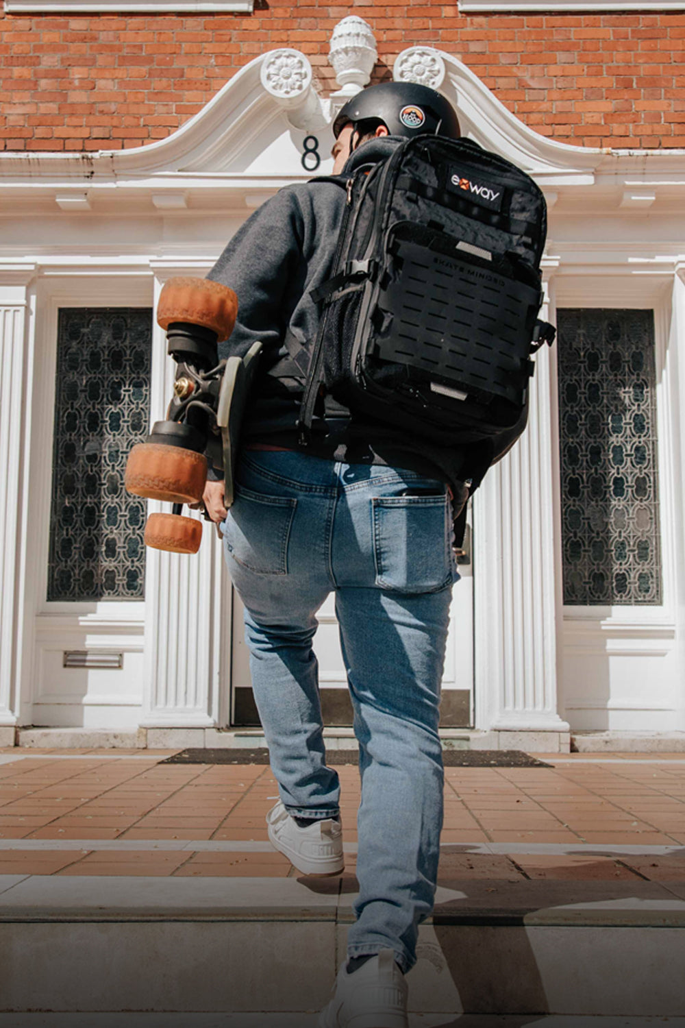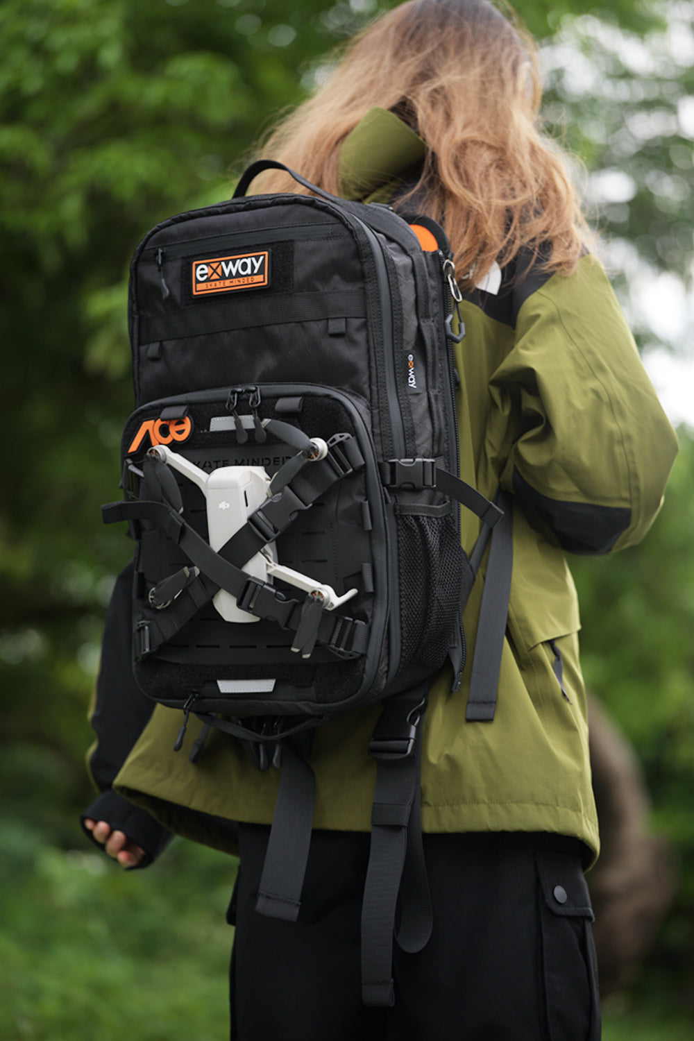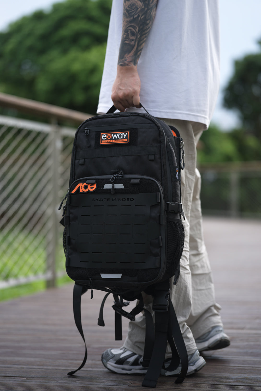Detachable skateboard carrying system, 56% lighter compared to Exway's previous generation backpack (2.5kg reduced to 1.10~2.05kg)