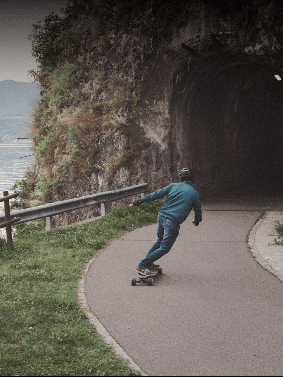 Despite the limited space within the deck, we increased the battery capacity by a further 20%, enabling up 30 kilometers or 18.6 miles of range. The board uses an integrated deck design, the components are inside the deck and the deck also uses our shock absorbing griptape. The ride therefore is extremely comfortable even over bad terrain and road surfaces.