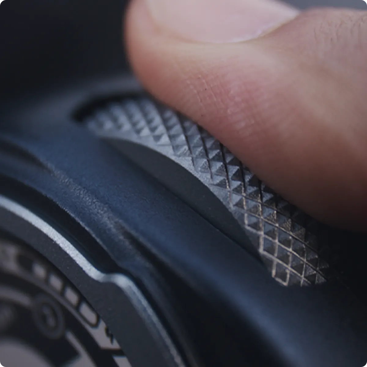 Large-radius, ultra-wide metal scroll wheel offers unprecedented precision control.